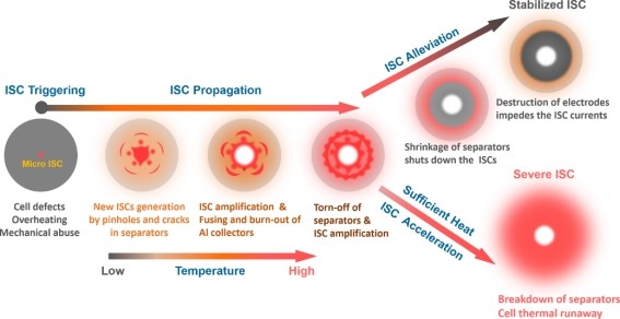 電池微短路演變過程與內(nèi)部機制示意圖
