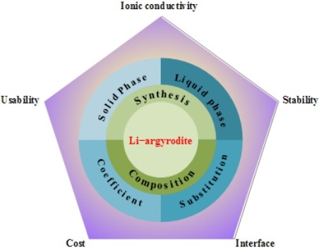 硫銀鍺礦型固態(tài)電解質(zhì)評價指標(biāo)與研發(fā)方向示意圖